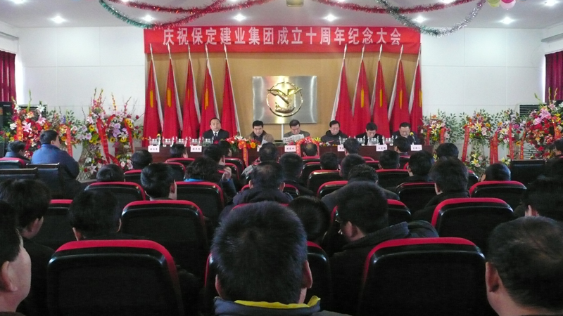 2008年12月18日上午8時28分,慶祝保定建業(yè)集團成立十周年紀念大會在集團公司六樓大會議室隆重召開,參加大會的有市建設(shè)局有關(guān)領(lǐng)導(dǎo)、市總工會有關(guān)領(lǐng)導(dǎo)、兄弟單位領(lǐng)導(dǎo)、集團領(lǐng)導(dǎo)及集團公司有關(guān)人員共計200余人,共有60多家單位給本次大會的召開發(fā)來了賀信,大會在隆重的國歌聲中開幕。