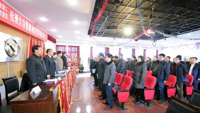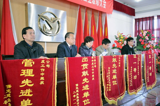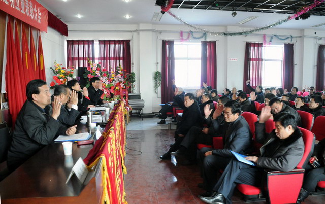 大會(huì)在莊嚴(yán)的國歌聲中拉開了序幕,首先由集團(tuán)公司副總經(jīng)理要保林做《二零一零年度工作總結(jié)(草案)》,總會(huì)計(jì)師于廣志做《二零一零年度財(cái)務(wù)工作報(bào)告》,監(jiān)事會(huì)主席閆雙彥做《二零一零年度財(cái)務(wù)審核報(bào)告》,副總經(jīng)理谷進(jìn)寶做《二零一零年工作安排意見的報(bào)告(草案)》,工會(huì)主席黃春玲做《二零一零年度職代會(huì)工作總結(jié)及二零一一年度工作安排報(bào)告(草案)》。隨后全體與會(huì)代表對(duì)上述報(bào)告進(jìn)行舉手表決,均全票通過。會(huì)后,集團(tuán)公司董事長兼黨委書記張?zhí)m柱同志做重要講話,總結(jié)了集團(tuán)公司在二零一零年工作中的經(jīng)驗(yàn)與不足,激勵(lì)廣大職工、股東代表在新的一年里為企業(yè)的快速發(fā)展繼續(xù)作好排頭兵、發(fā)揮表率作用,與廣大員工一起為集團(tuán)公司貢獻(xiàn)力量。